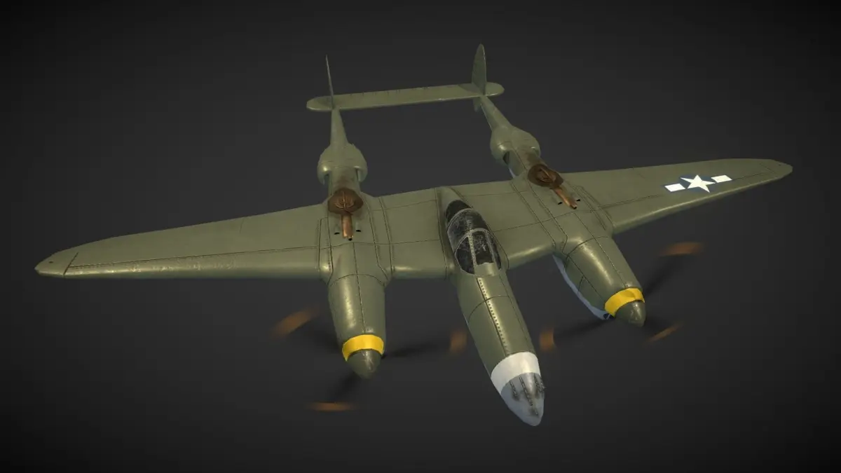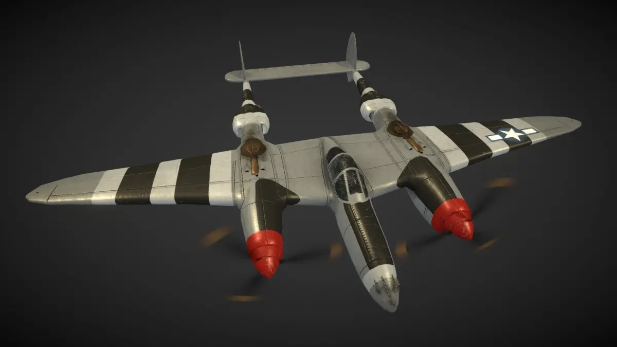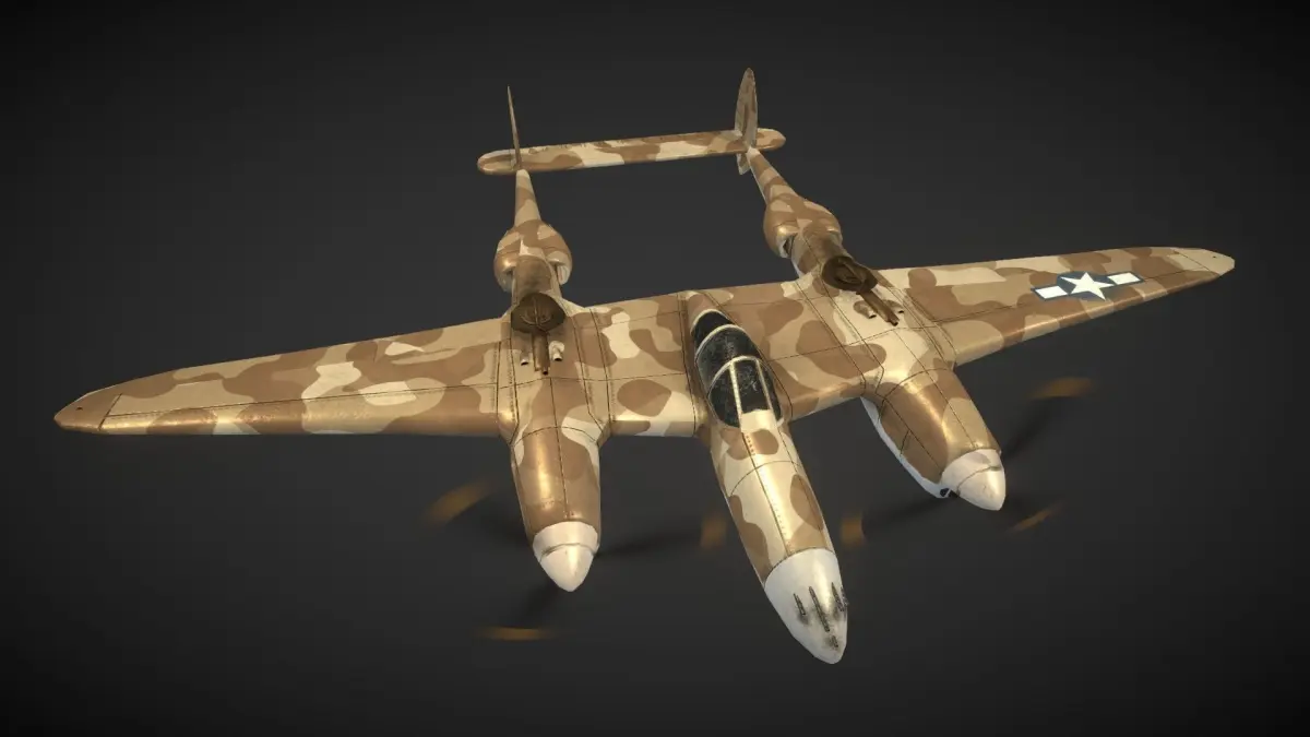 Low Poly model with PBR textures of the World-War 2 era American fighter aircraft Lockheed P-38 Lightning.