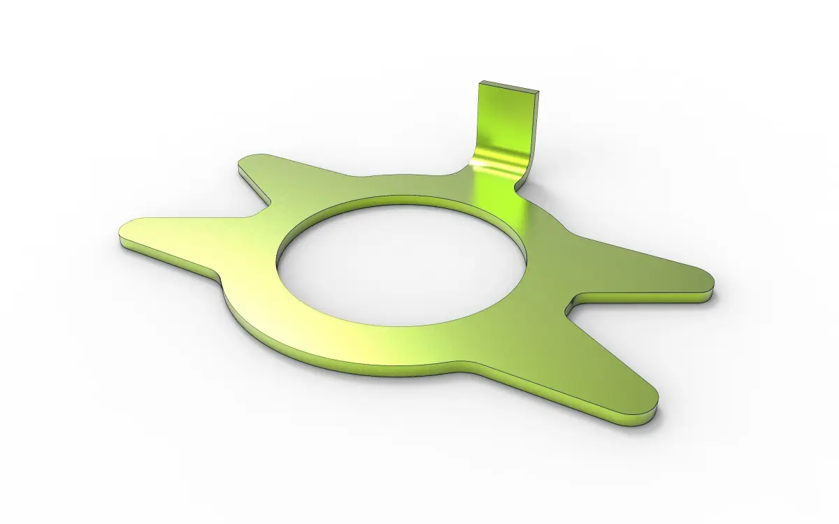 Locking tab washer. It's Solidworks model was exported in other CAD formats:(X_T, IGES, STEP, OBJ and STL). This 3D model can used in producing on CNC machines and for 3D printing.
