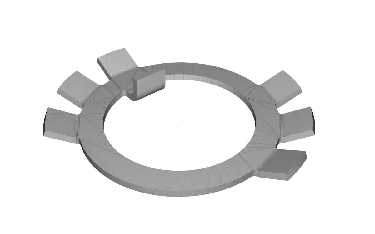 Locking tab washer. It's Solidworks model was exported in other CAD formats:(X_T, IGES, STEP, OBJ and STL). This 3D model can used in producing on CNC machines and for 3D printing.