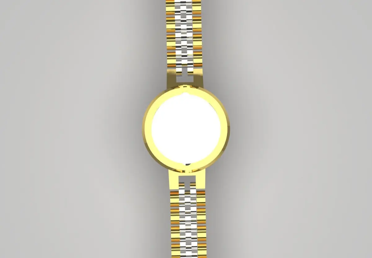 This piece includes a watch case (frame) and part of its strap, which with its classic and two-tone design, shows an appearance of authenticity and luxury. The combination of yellow gold and silver metal in the strap, and the simple and classic design of the case, make this product ideal for creating a men's or women's wristwatch with a timeless and durable style.