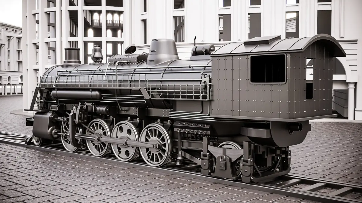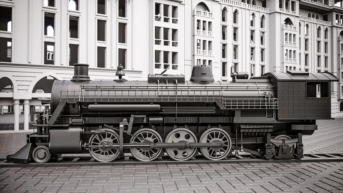 locomotive old steam in city 3D model