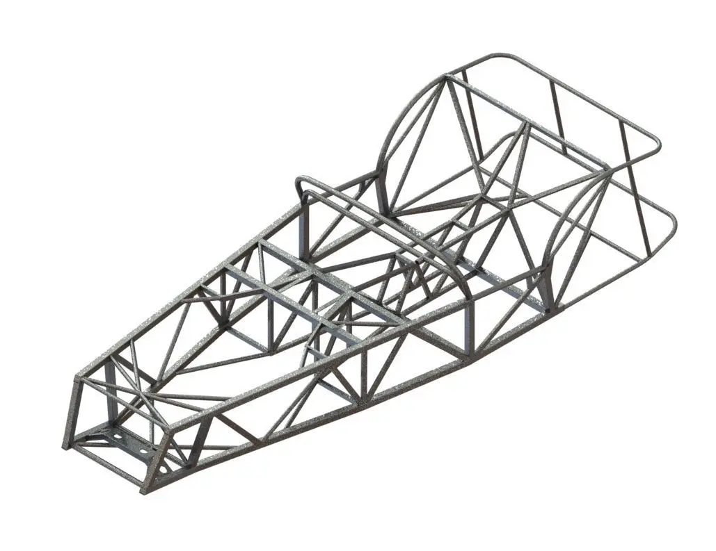 Some dimensions of this chassis were taken from the standard Caterham Seven 485 (2019) and old drawings of Lotus Super Seven S2.