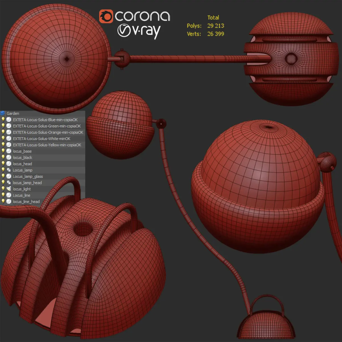 The flare branches off from the luminous sphere. The lamp is adjustable to allow suggestive light effects and to personalize the atmosphere of your environment.