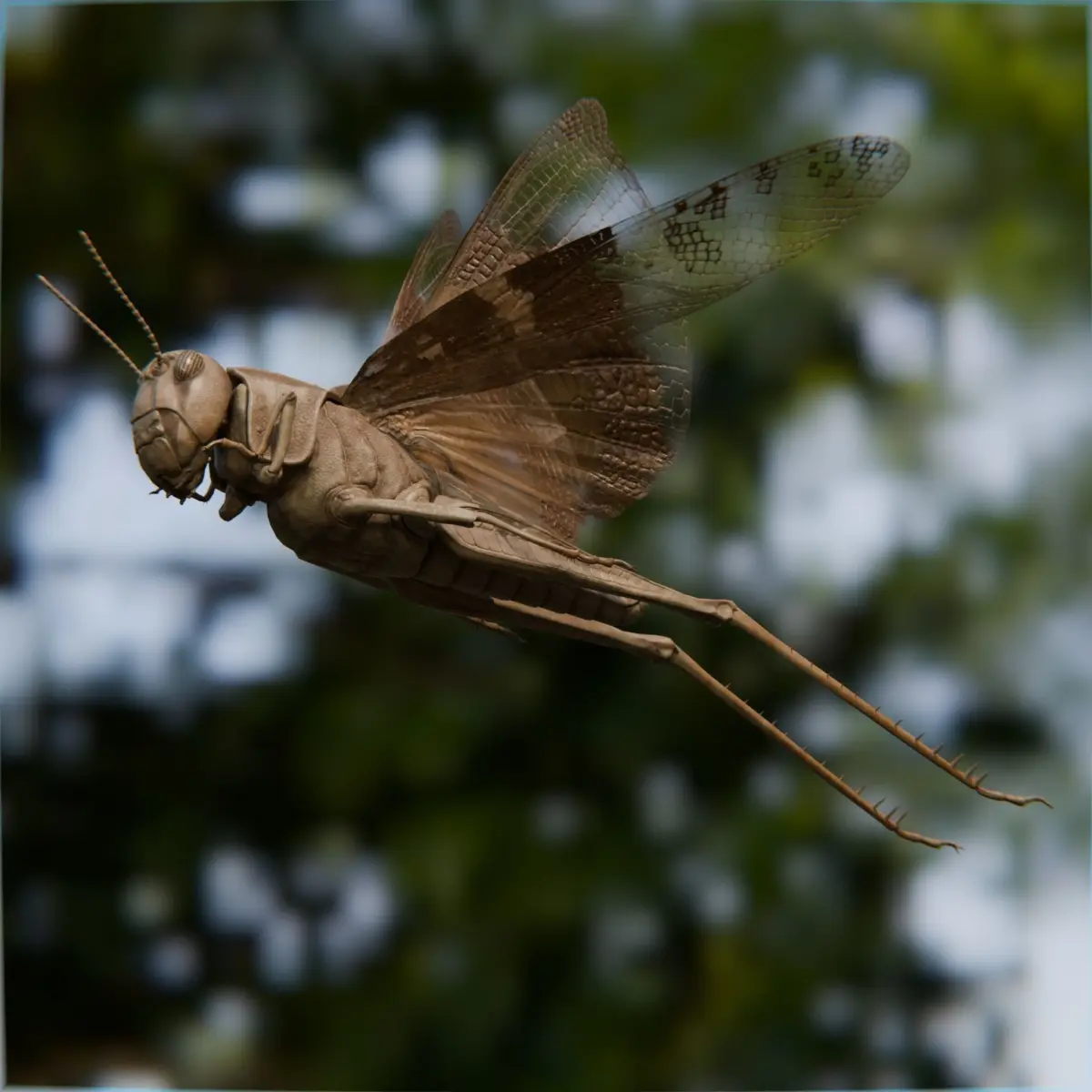 Realistic low to mid poly model of a locust with detailed normal map, pbr textures and rigged.