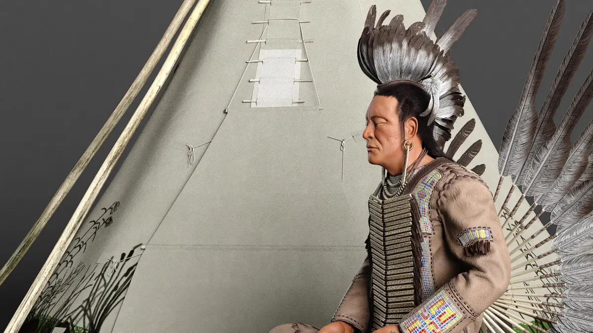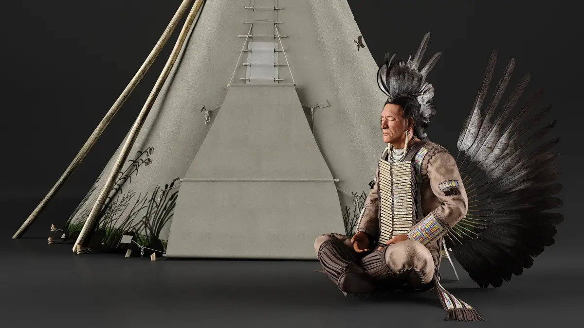 Lodge and American Indian is a three-dimensional model of American Indian male character who is a brave American Indian man.