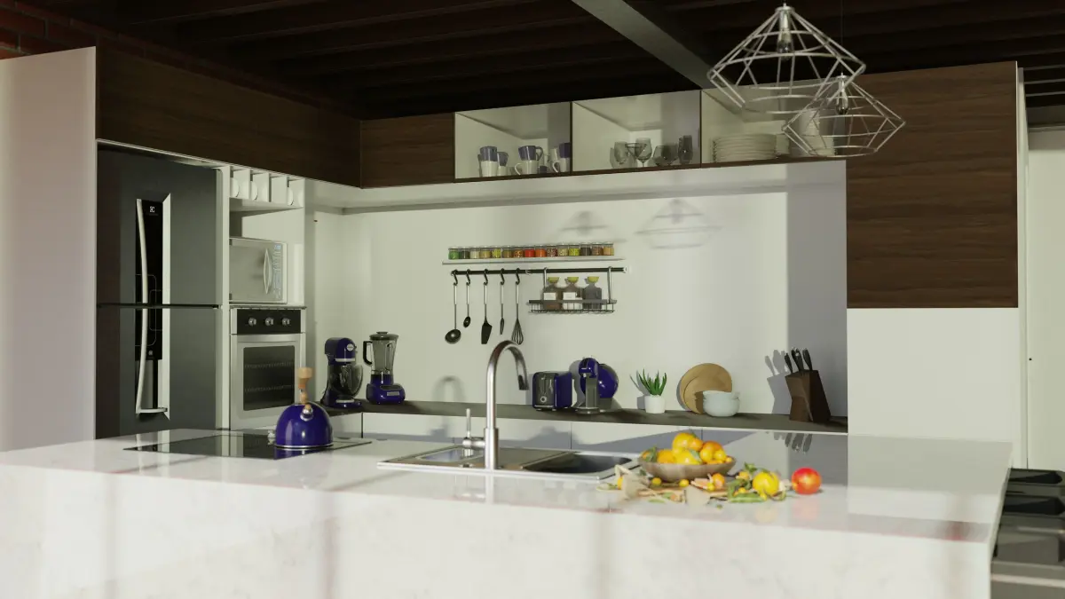 This is a Render Setup of a Loft apartment with a living room, kitchen, office and bedroom. These renders were created keeping in mind that the spaces should be comfortable and cozy both for those who would use the space and for those who appreciate the scene.