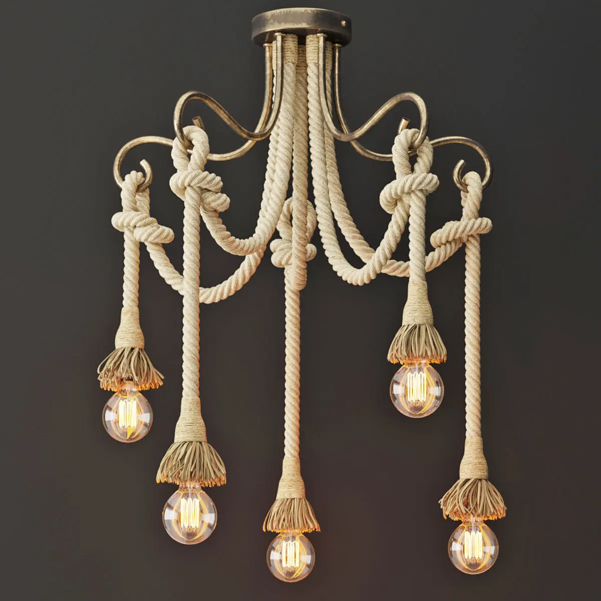 descriptionCHARACTERISTICSType ChandelierMaterial Metal, Hemp RopeHeight 40 cmDiameter 57 cmType of lamp 5 x E27 x 40WStyle Modern / Loft /Place of useliving room / dining room / bedroom / hall / lounge area / bar, cafe, restaurant / hotel and hotel /In the archive: Max 2011_CoronaMax 2011_Vray