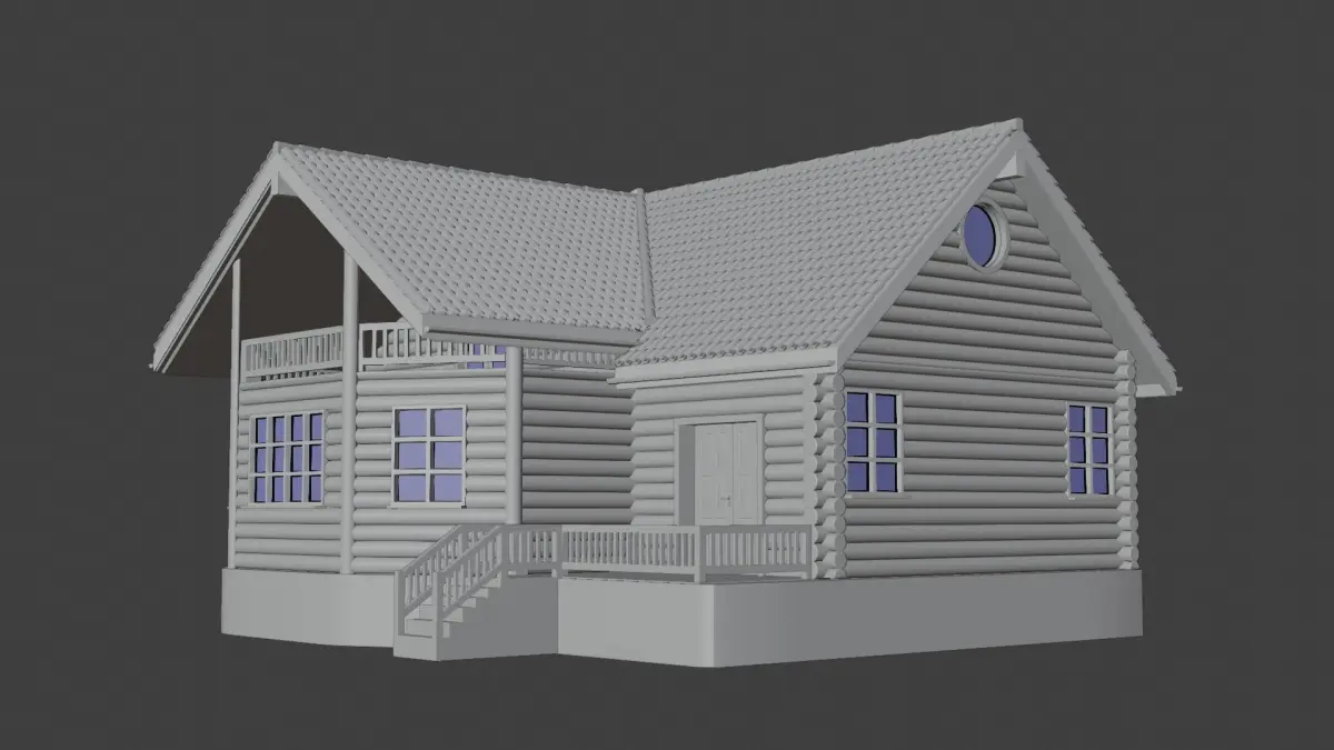 The detailed 3D model of private Log Cabin.