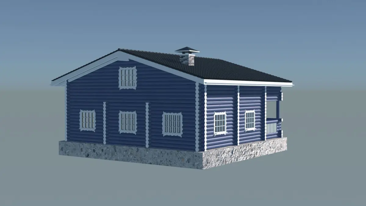 The 3D model of Painted Log Cabin with a nice details.