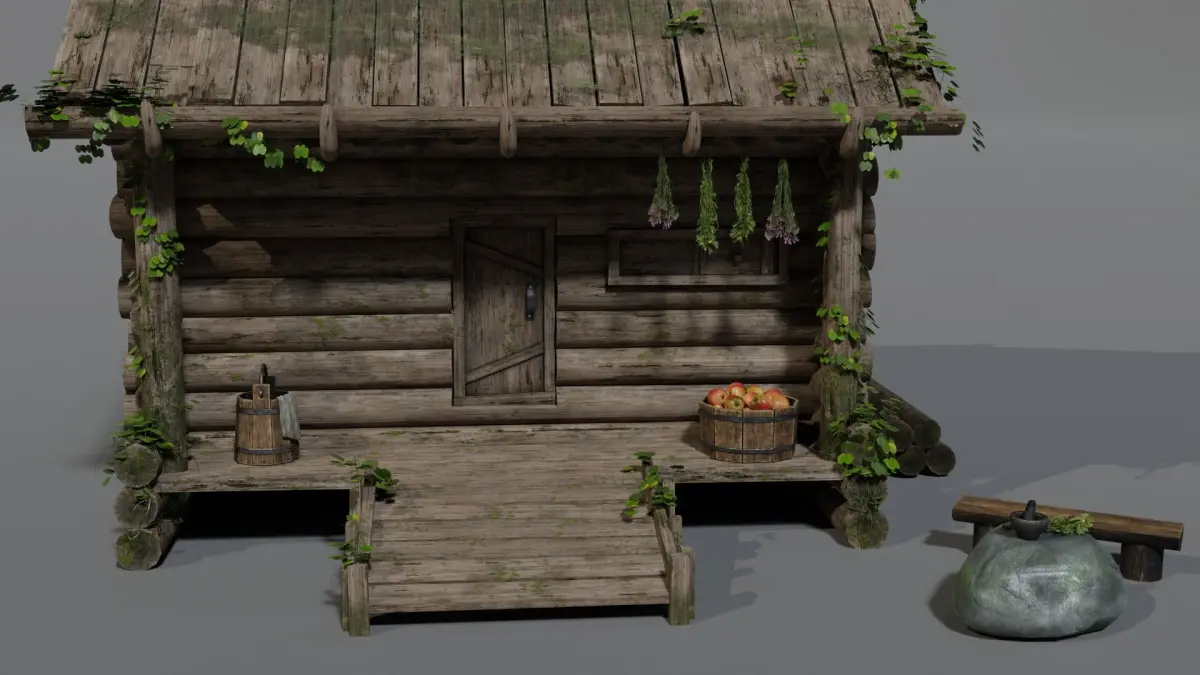 This is a real-time 3D model of a slavic log house, suitable for games and VR.
