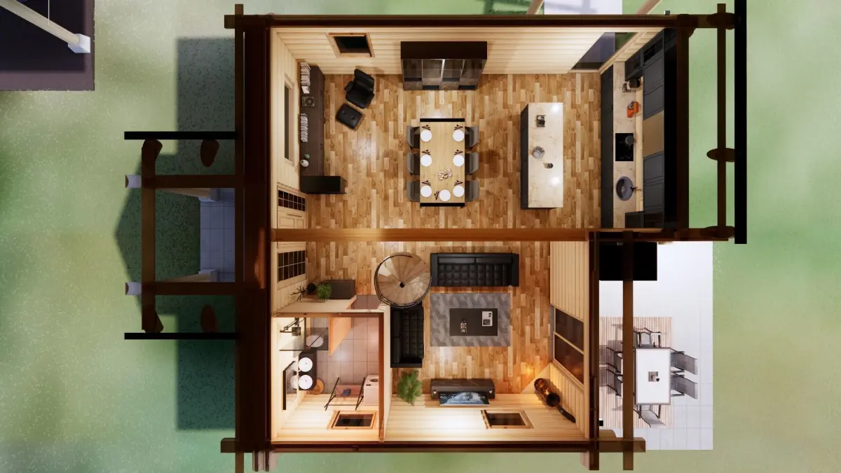 Modern designed log house, vacation house,blockhouse, with a SPA,garage, fireplace, terrace. Modern designed home, tiny house, vacation house with a swimming pool and fully furnished interior(1 floor), fireplace, terrace... can be produced in Slovenija and can be ordered and placed any where in europe.Or you can build it yourselve. Unique designed,modern,highly detailed 3D model with lot of useful 3D models and furniture in it. Model contains house with all the furniture in ,living room,bathroom and terrace with pool. SOME MODELS LIKE NATURE, PEOPLE, FIRE, DECORATION... ARE PROXY MODELS FROM RENDER ENGINE LUMION AND/OR ENSCAPE! * additional models (shower,sink,faucet,toilet, TV,fireplace,outdoor lounge,windows,door..) included. And some decoration that is also included. Suitable for sea site area as for the mountain areas and all kind of camping resorts. The model is done with SKETCHUP 2020 PRO and rendered withLUMION 10! BEST TO USE WITH SKETCHUP! 3DS Max and Cinema 4d users can import sketchup 2008 file format or fbx or obj... , or ASK DESIGNER FOR ADDITIONAL FORMATS or INFO ABOUT MODEL. All textures appliances and furniture equipment is in high resolution, have been checked and are included in the scene.Textures are compresed in zip file.Model is easy to manipulate and ready to render with LUMION. Real world scale and exact proportions cm. Realistic and correctly scaled! • Excellent polygon & texture efficiency Purchasing this model, you get different formats and permision to use the design i any way you want(royality free licence):skp, dwg,fbx,glb.. or ask the designer for different formats.But best goes with a native sketch up. Be aware, that dimensions are not 100% accurate, because this is for design presentation porpoise, not architectural technical plan. I do 3D concept designs, not architectural plans, but I do try to make it as accurate as possible. lumion 120 file also available.