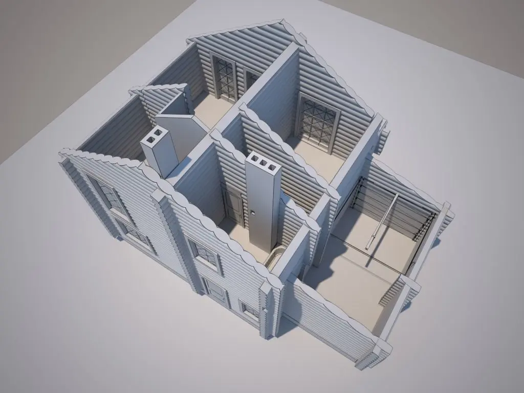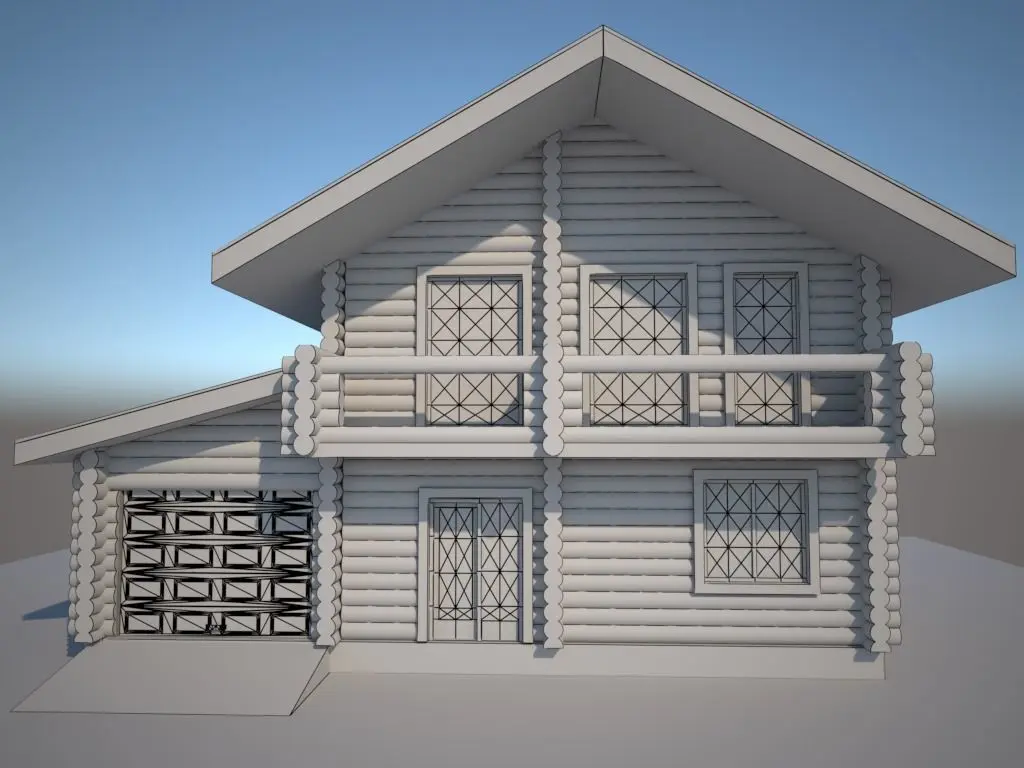 A log individual house. Modeled in Revit. Ready model for applying materials in 3DS Max. Objects are divided by materials. Vray 3.6 , 3D Max 2015A simple project and drawing of a log house in Revit