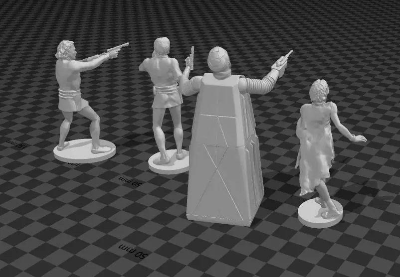 From the 1976 hit futuristic movie starring Michael York and Jenny Agutter, figurines to print, max scale 10 millimeters, better using a resin printer to get details. Robot's arms are on a separate file. Come nice handpainted. A must for any sci-fi enthusiast or science fiction toy collector. Look for the hand prop and one of the carousel guys on Cults3d, which are in same scale.