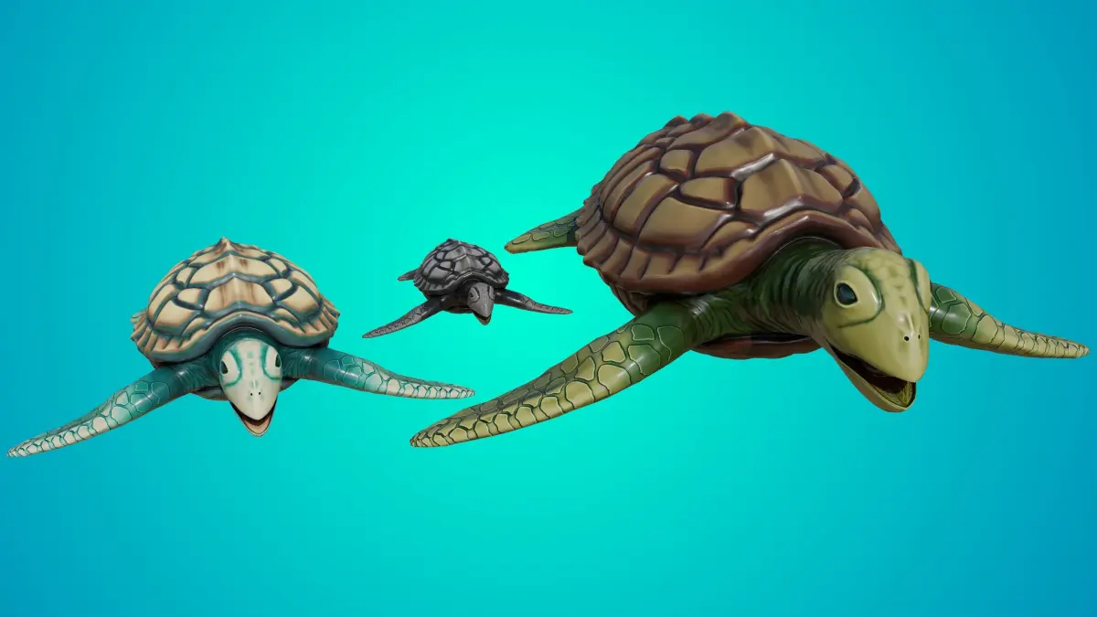 Loggerhead sea turtle (Caretta caretta) Family with three different textures Baby, Adult Female and Male Caretta caretta family.