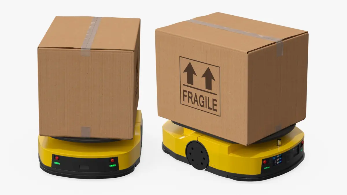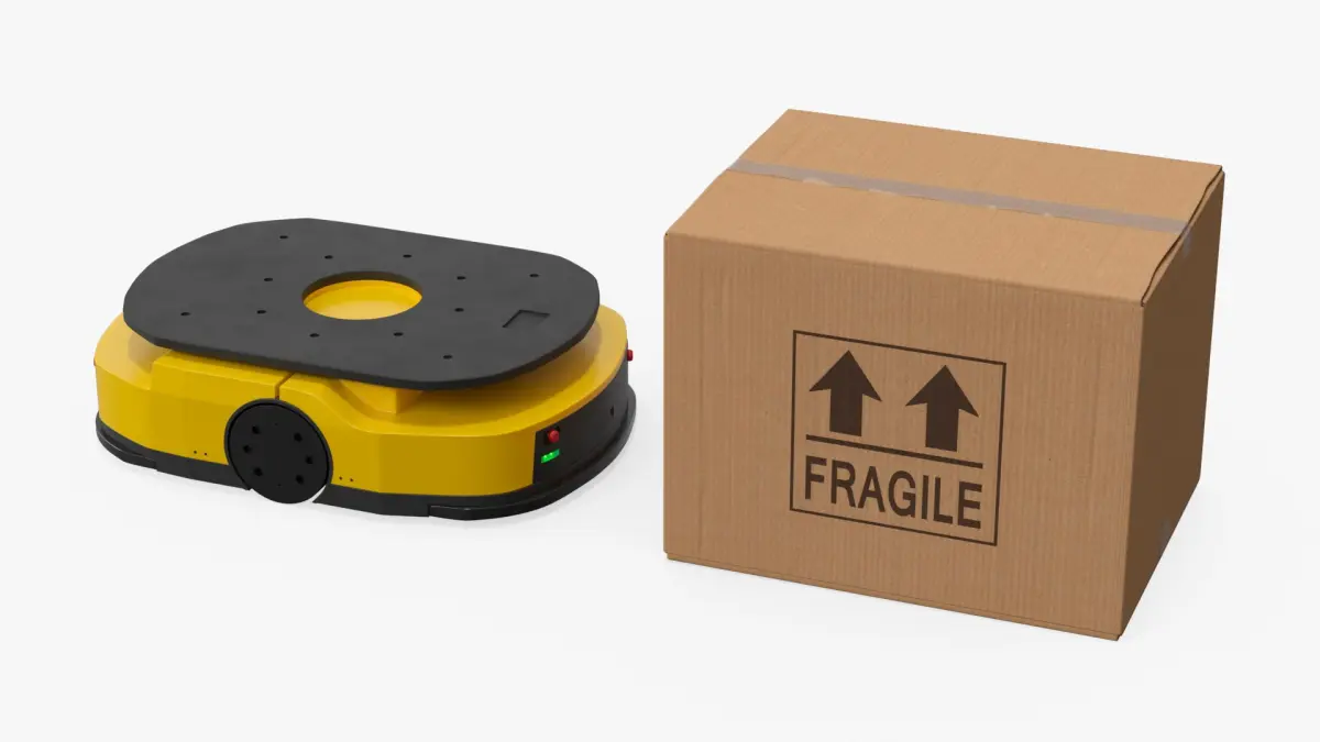 Warehouse Delivery Robot with Fragile Box Yellow