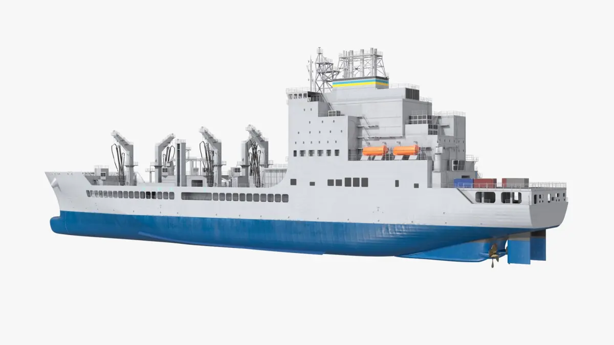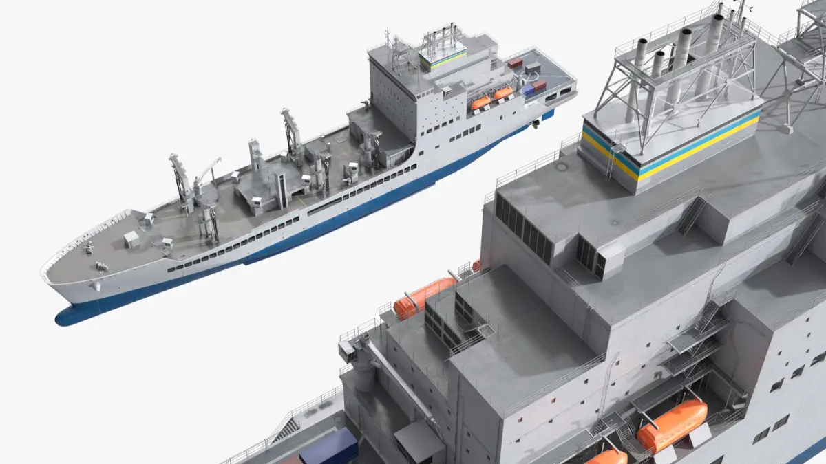 For maritime simulations, naval architecture studies, defense logistics projects, ship design visualization, ocean transport renderings, training simulations, fleet operation models, and educational or virtual environment scenes.