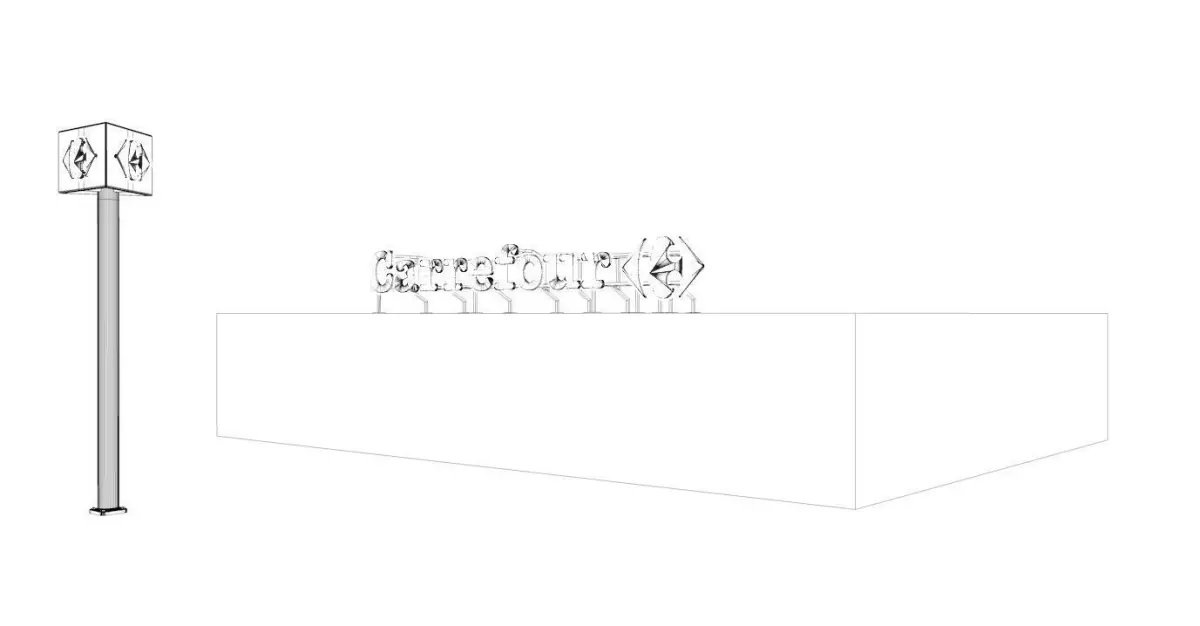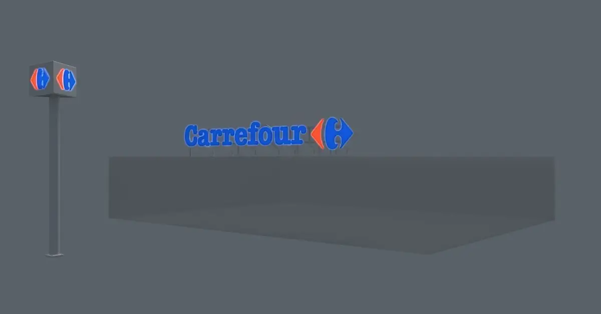 The Logo and the Carrefour sign with the lights is modeled under Cinema 4D R20. The native format is that of C4D. The other formats on offer are: .3ds ... . Fbx.... Obj with .Mtl file.No texture is required. If necessary, you can remove the global light, cube and sky.