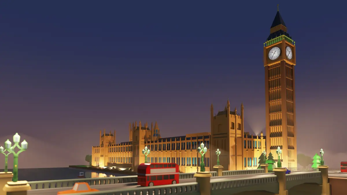 London Big Ben lowpoly 3d scene, the native Blender file is ready to render with multiple moods included (day, sunset, dusk, foggy).all preview renders were generated in realtime with Eevee render engine, but set to work with Cycles too.to switch between the different scenes, use the scene manager dropdown menu on the top right of Blender UI.no textures used, only flat material colors, the FBX exported file imports well with lights.