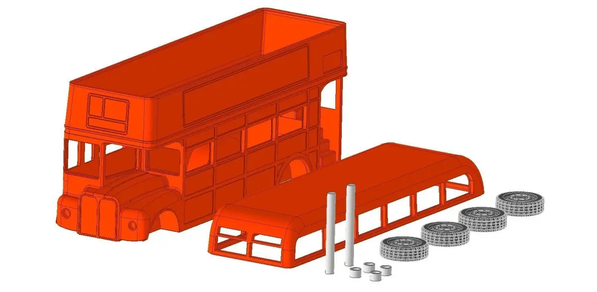 London bus scale 1:43 (length 200 mm) There are 5 parts that are easy to assembly. Use layers as thin as possible.