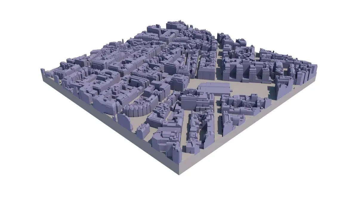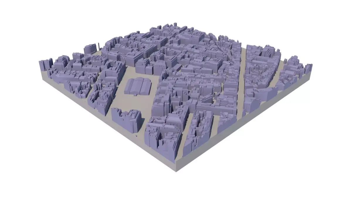 Available in 0.25 km2 Tiles (500 x 500 metres in real-world coordinates) Manually captured from latest 2016 Aerial Survey 50 cm accuracy 3D model with all roof structures accurately captured Accurate & Separated Terrain 5 year company-wide multiple use licence Easy to use, available in SKP, CAD, FBX formats 3D Print ready