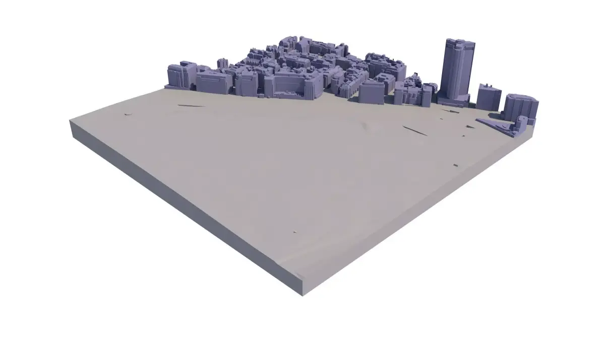 Available in 0.25 km2 Tiles (500 x 500 metres in real-world coordinates) Manually captured from latest 2016 Aerial Survey 50 cm accuracy 3D model with all roof structures accurately captured Accurate & Separated Terrain 5 year company-wide multiple use licence Easy to use, available in SKP, CAD, FBX formats 3D Print ready