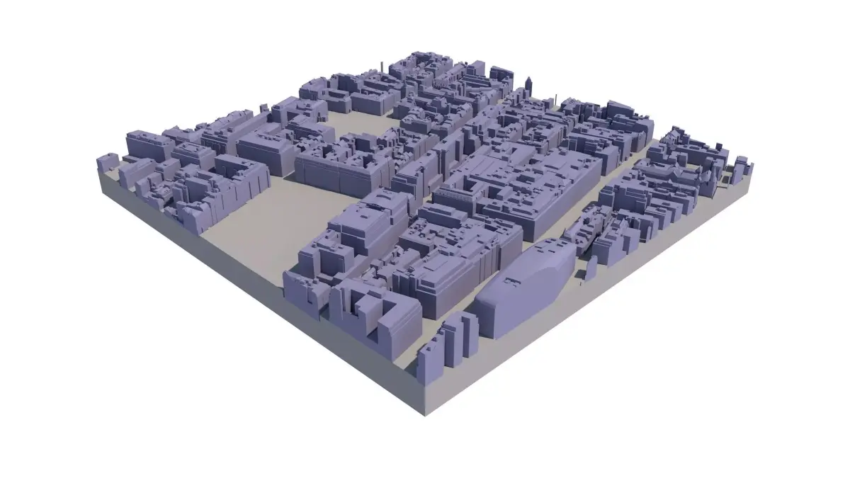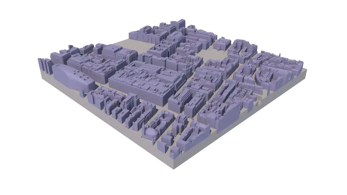 Available in 0.25 km2 Tiles (500 x 500 metres in real-world coordinates) Manually captured from latest 2016 Aerial Survey 50 cm accuracy 3D model with all roof structures accurately captured Accurate & Separated Terrain 5 year company-wide multiple use licence Easy to use, available in SKP, CAD, FBX formats 3D Print ready