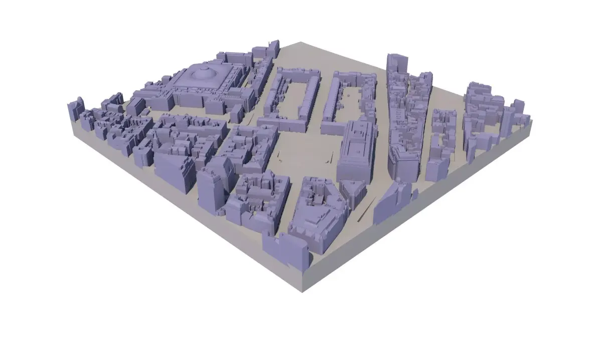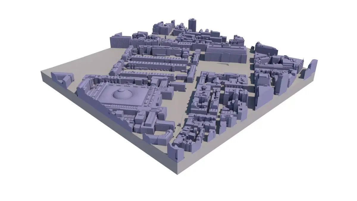 Available in 0.25 km2 Tiles (500 x 500 metres in real-world coordinates) Manually captured from latest 2016 Aerial Survey 50 cm accuracy 3D model with all roof structures accurately captured Accurate & Separated Terrain 5 year company-wide multiple use licence Easy to use, available in SKP, CAD, FBX formats 3D Print ready