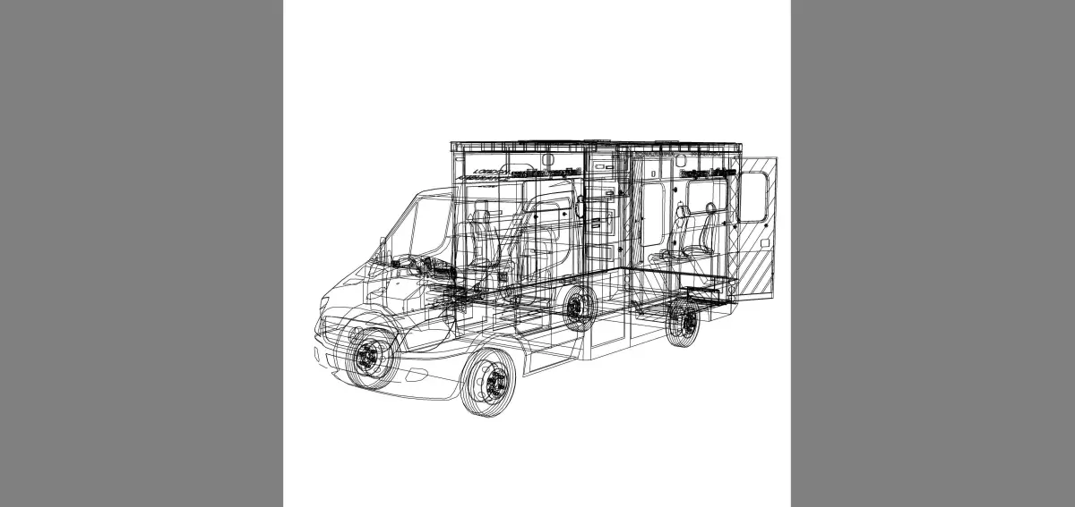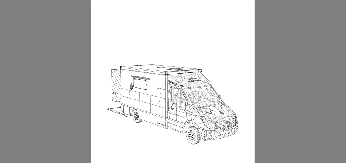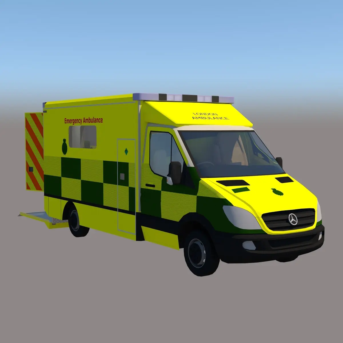London ambulance 3D model with adjustable Ramp, doorswith detailed interior.