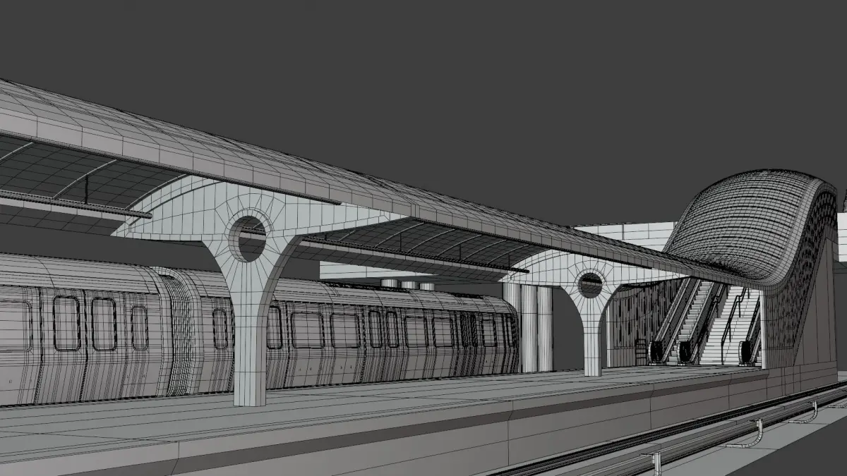 - This is 3D model of metro station with London train S8 and bridge with generic buses.