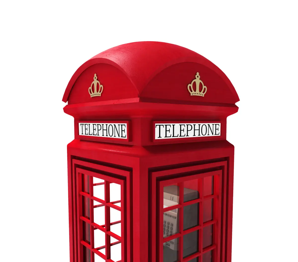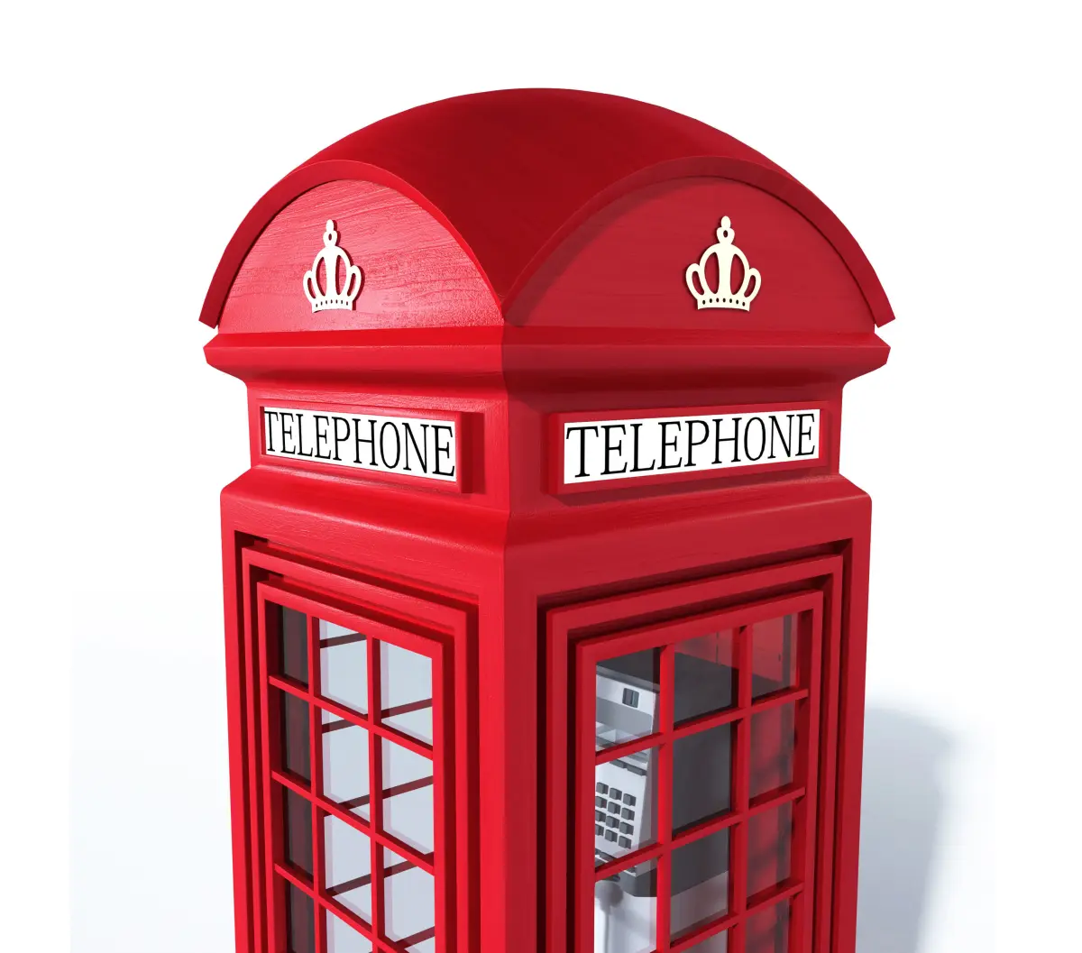 This is a detailed 3d model of a London telephone booth figurine.