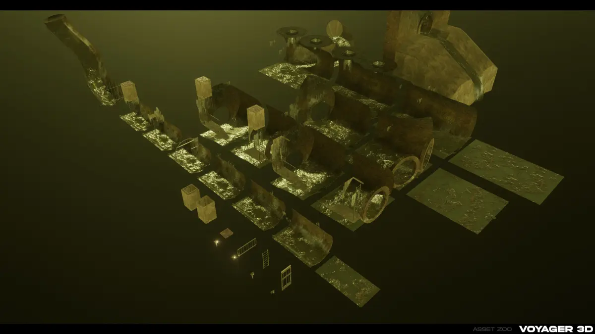 This pack includes:-1 Door mesh-1 Ladder mesh-1 Railing mesh-1 Manhole mesh-14 Tunnel meshes (not including flipped peices)-2 Vertical ladder tunnel meshes-2 Wall light meshes-1 lens flare texture