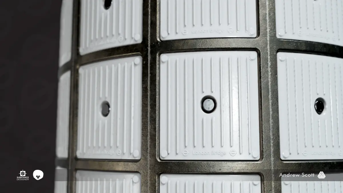 Westminster_WallTiles_01 - Includes the main metal tile used at the station with options for weathering, tiling and normal intensity controls.