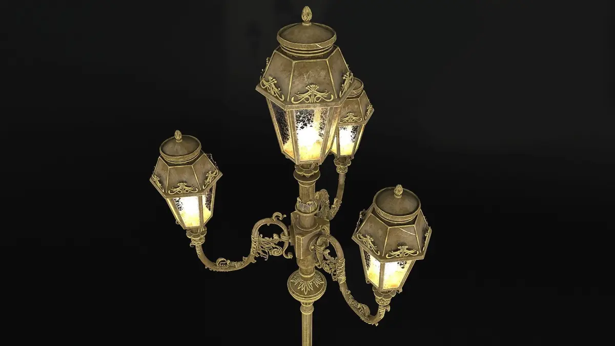The model contains 2 UV sets (pole and lanterns) which come with several textures for such render engines as Corona, Arnold5 and PBR (MetalRough).