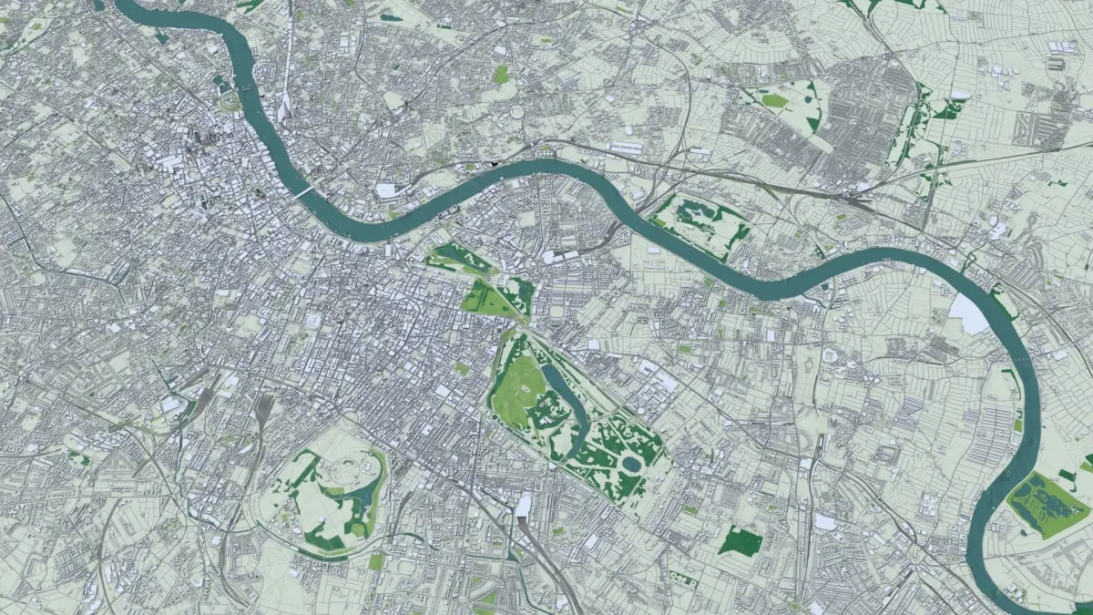-3D Buildings-Terrain-Roads + Railways + Pedestrian Paths-Vegetation + Forest map-Water map