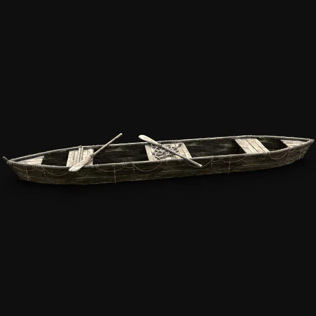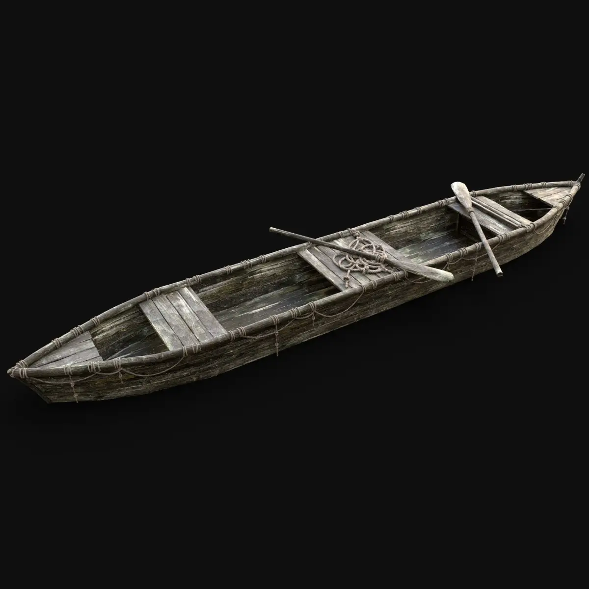 - Next gen, AAA quality, game-ready model of long wooden boat.
