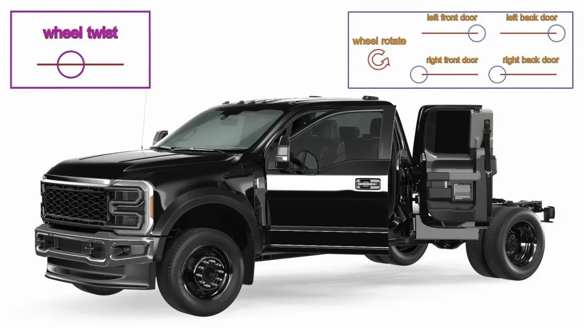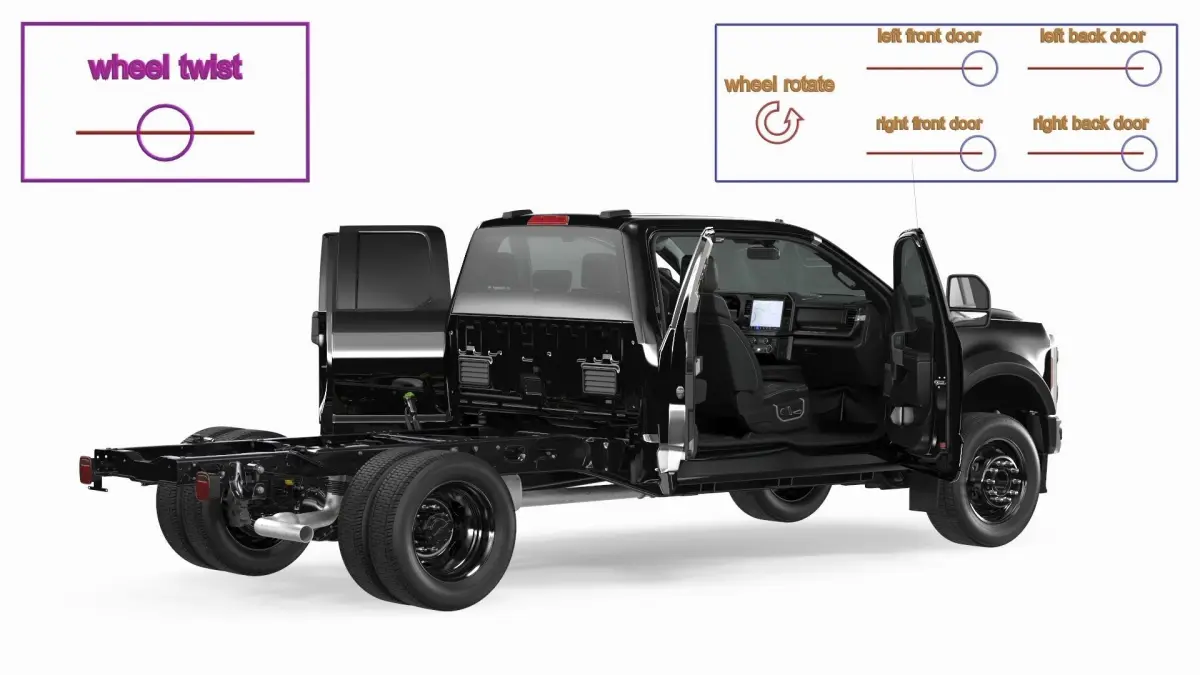 Long Cab Pickup Chassis Cab Black Rigged is fully rigged and is ready to be animated. You can easily position it the way you need or animate it the way your project requires using helpers in 3D Studio Max. See the turntable to get an idea of how rigging works.