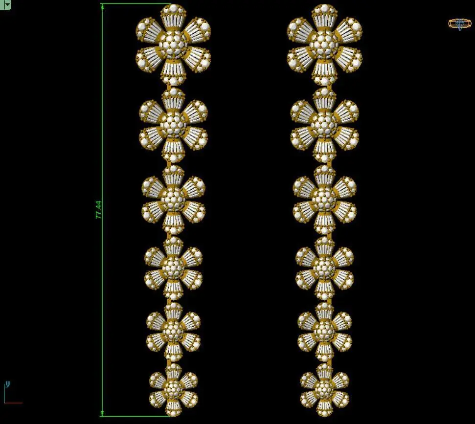 - Long earrings adorned with flowers and baguette diamonds