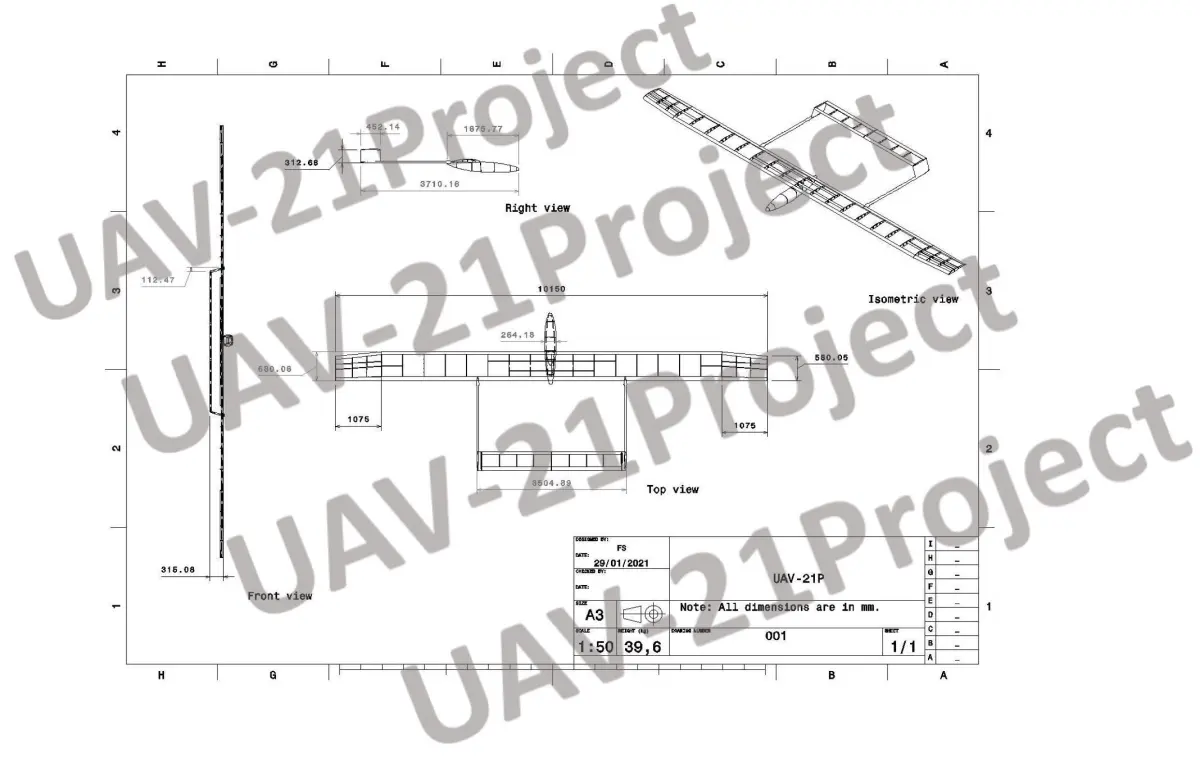 The wing airfoil is SG6043 and the tail airfoil is NACA008.The technical drawing is also available with all the dimensions, but see below: