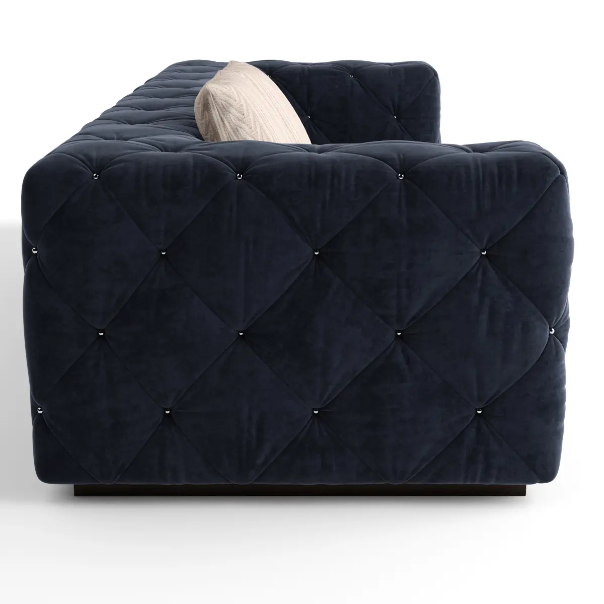 Load-bearing pine structure, covered with extremely high-density polyurethane foam in different thicknesses. Upholstery of fabric combined with Dacron and assembled with “Capitonné” finish. Sofa made with double seat depth. The new Isola element, combined with the various available chairs, can create an array of furnishing solutions.