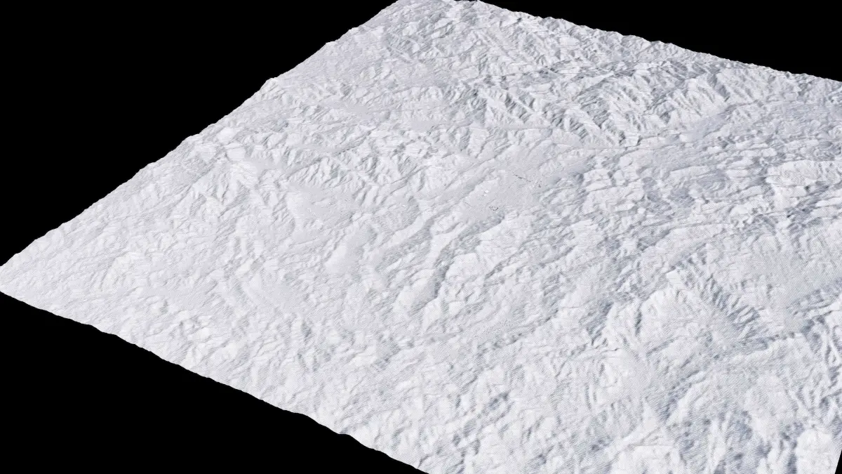 Originally created in Houdini 19. Final images rendered in Houdini. Data source is ASTER GDEM V3, ASTER WATER V1, Open Streep Maps 2022, Copernicus Sentinel 2016.