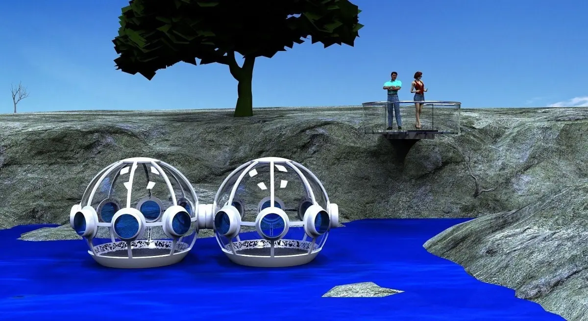 small glass deck to over looking future glass floating gazebos for spending a retreated rest and relaxation vacation
