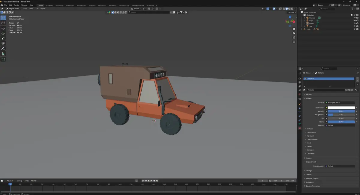lopoly Animated Truck in blender Low-poly 3D model