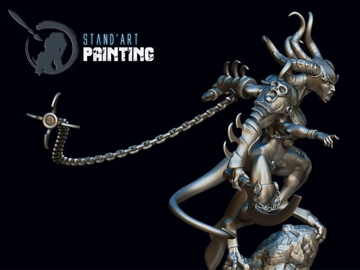Head with or without helmetSimple or scorpion tailSeveral weapons or hands (with whip, sickle or swords or saber)It's a model to adapt according to your choices, all parts are pre-supported.