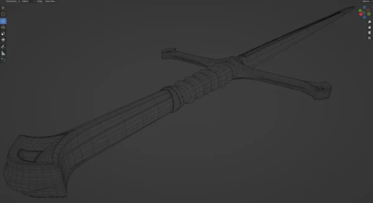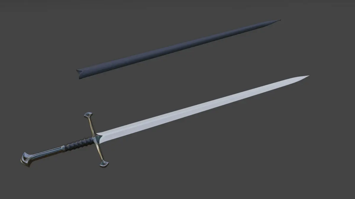 The iconic sword from The Lord of the Rings Made in Blender. This weapon model offers a blend of low-poly efficiency and high-quality details, making it an ideal choice for both game development and 3D visualization projects.