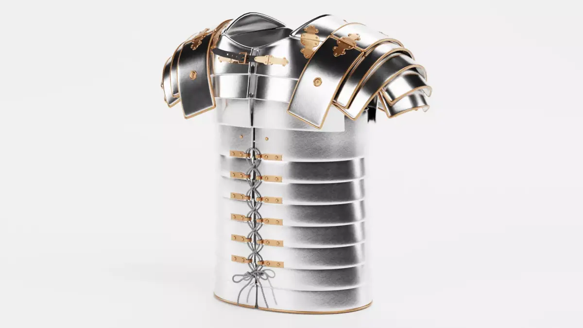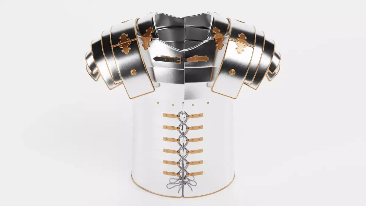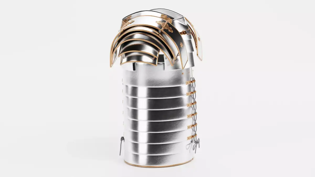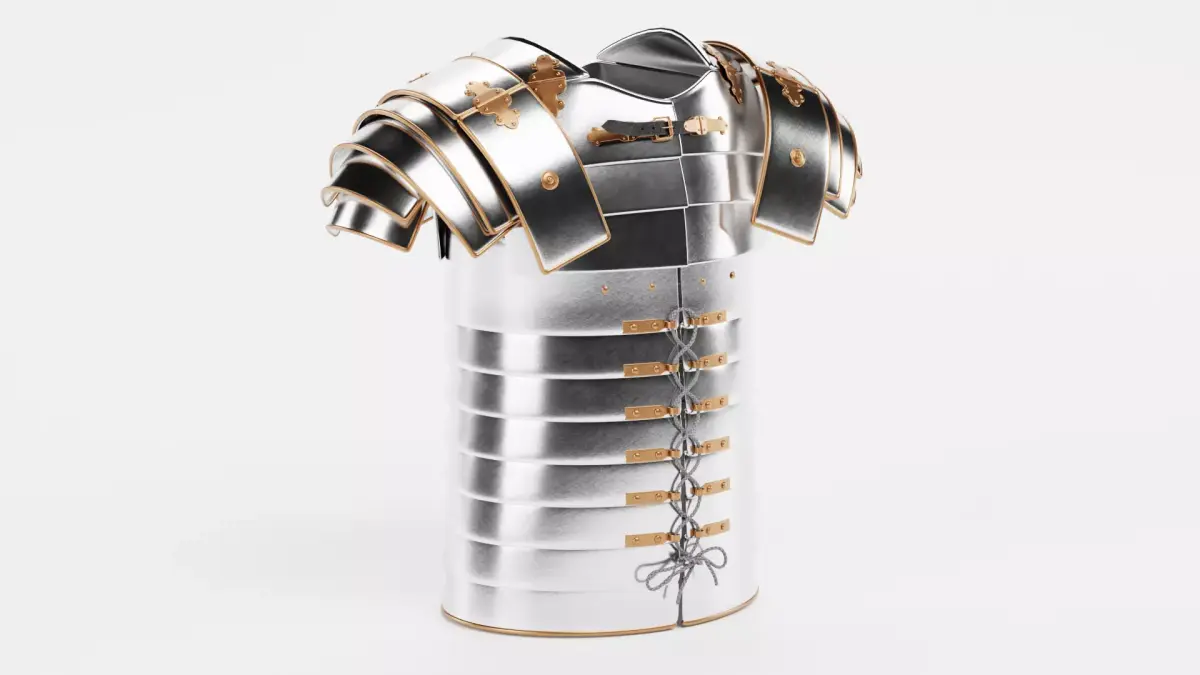 Roman legionary lorica segmentata with finely modeled lamellae and front buckles, including accurate fastening cords. Shoulder details and precise proportions enhance realism, while high-quality PBR materials faithfully replicate metal surfaces and subtle reflections. Every plate and strap is designed to capture the craftsmanship of ancient Roman armor.