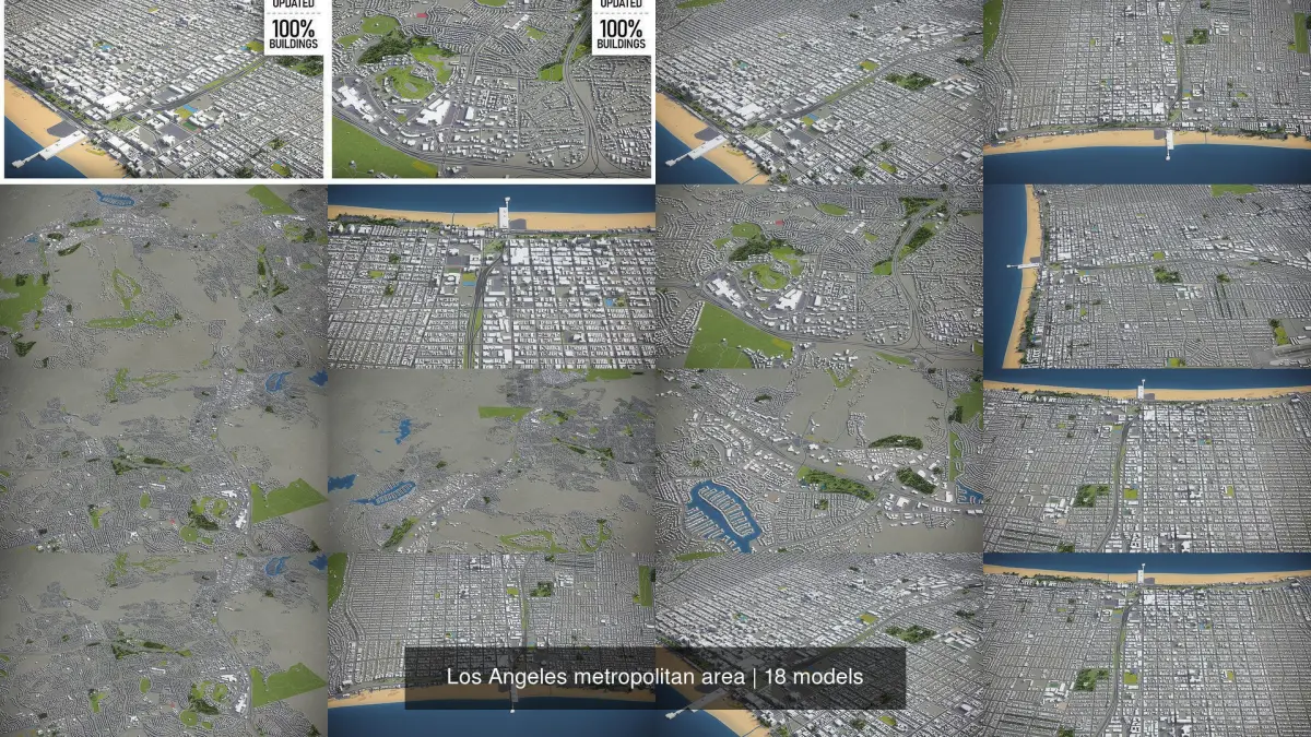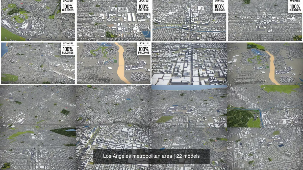 This is exact and accurate to scale 3D city model of Los Angeles metropolitan area and its surrounding area based on GIS data (February 2020)