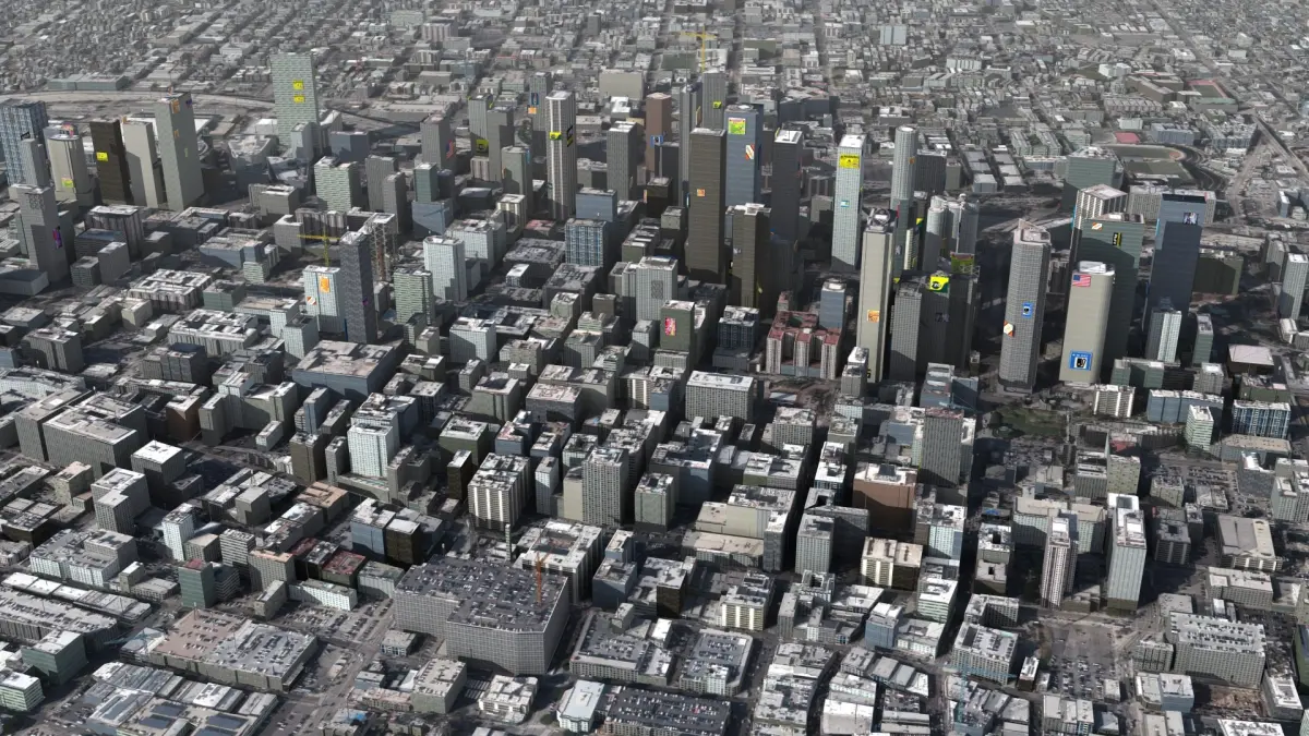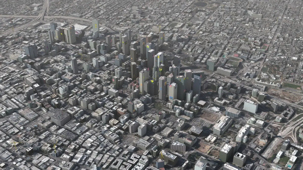 Los Angeles California City and surrounding areas, USA. 14km x 12km core real world terrain data, randomized building textures. Max version (2014 or above) includes render set-up ready to recreate preview images 'out of the box'. 46 textures used.