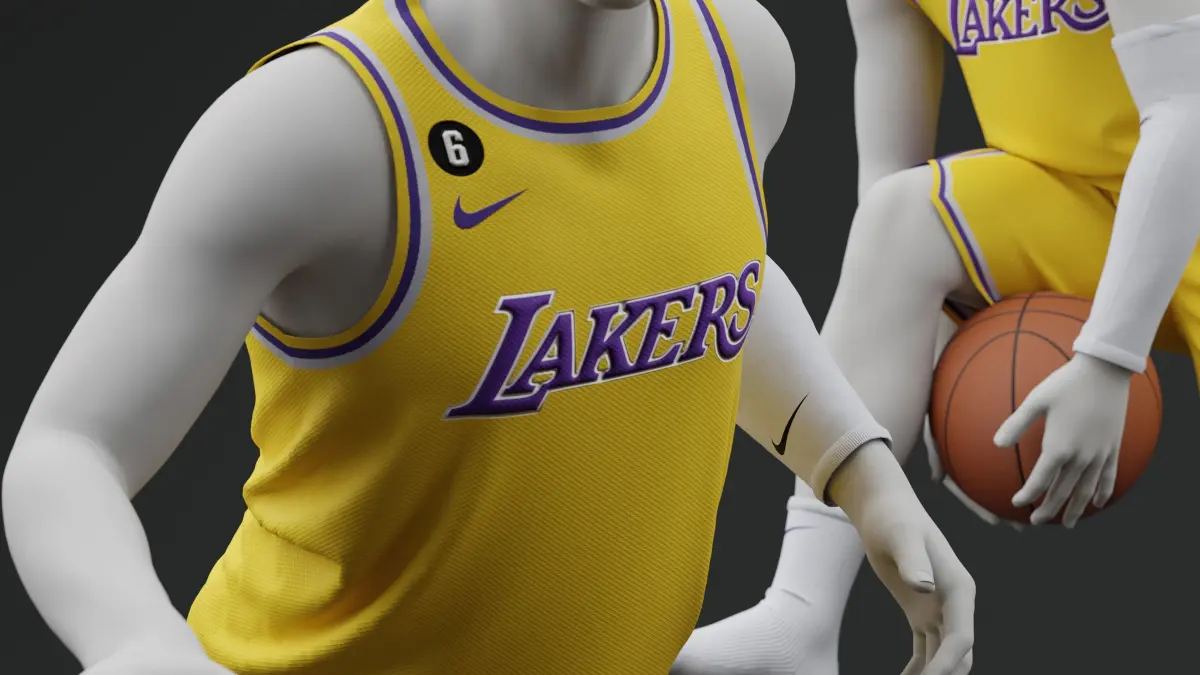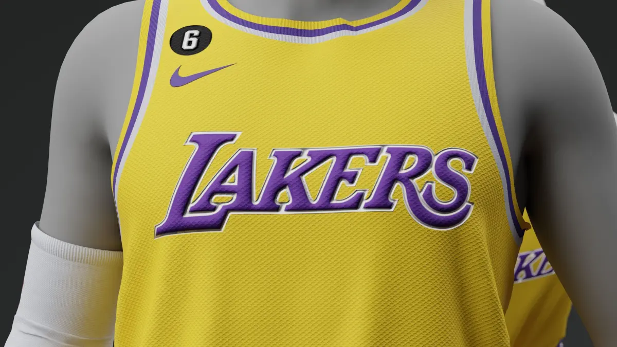 - 3d Model in Los Angeles Lakers Home Jersey Tucked OUT with 4 different poses and main A pose to be easily added on your character.