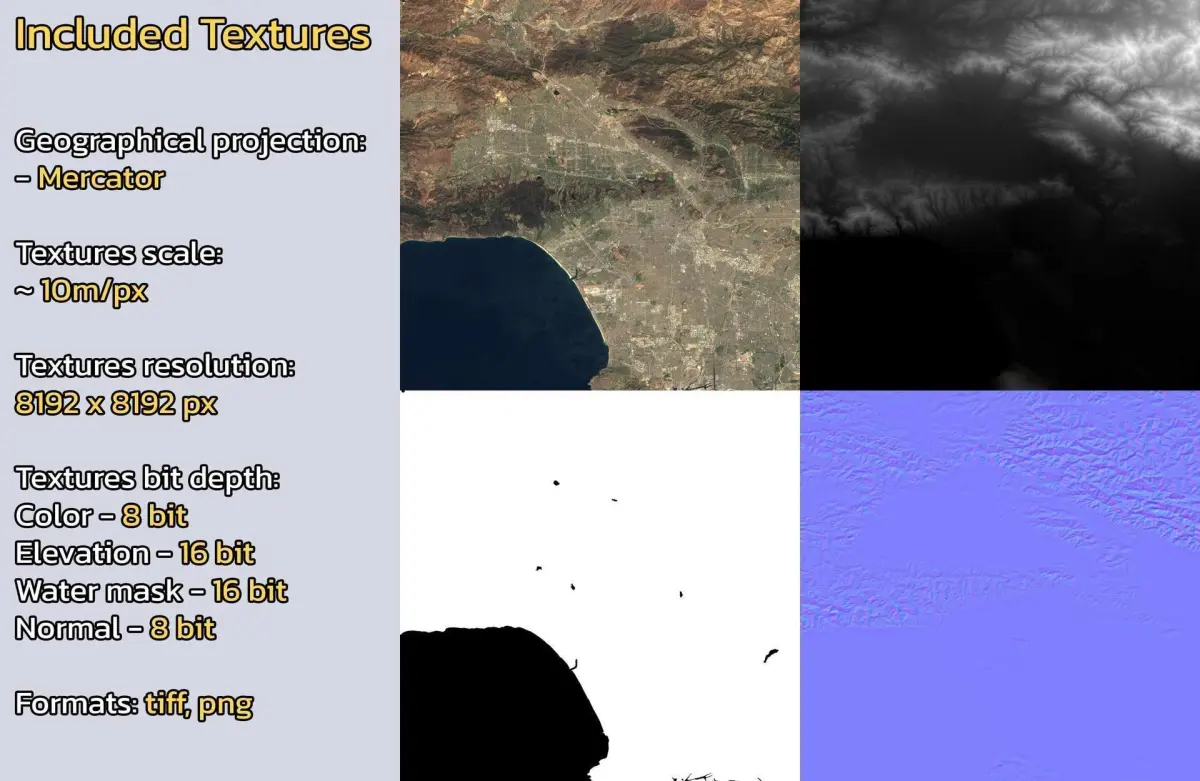 - Textures resolution: ~10m/px