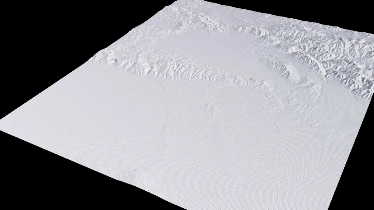 Originally created in Houdini 19. Final images rendered in Houdini. Data source is ASTER GDEM V3, ASTER WATER V1, Open Streep Maps 2022, Copernicus Sentinel 2016.